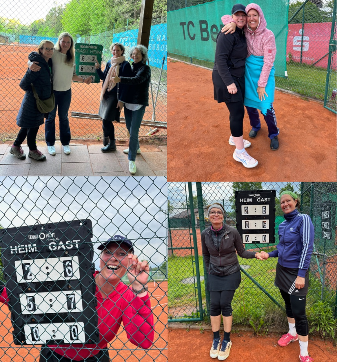 Die Hälfte der 6 Spiele ist nun schon geschafft und langsam kommen die Ladies in Fahrt: Ging das erste Spiel in Herrsching beim TCTP mit Siegen von Micha Voss und dem Doppel Eva Schneider/Bettina Primbs noch 2:4 aus, hielten sie gegen den SV Erpfting auf der Friedheimer Anlage schon mit einem 3:3 dagegen. Die Siege wurden von Sabine Koller und Bettina Primbs in den Einzeln und dem Doppel Fanny Fritsche/Sabine Koller eingefahren. Zuletzt steigerten sie sich am Starnberger See gegen die Damen vom TC Berg sogar zu einem klaren Sieg, der zwar erschwert wurde durch 4 kalte Regenpausen (in Landsberg schien derweil die Sonne!), die aber der guten Stimmung von Fanny Fritsche, Sabine Koller, Micha Voss und Barbara Ulrich beim 6:0 keinen Abbruch taten. Gekrönt wurden die Spiele gegen das sehr faire und sympathische Team im inzwischen erwärmten Clubhaus mit selbstgemachter Pizza und Aperol. Wunderbar. Entspannt und gleichzeitig hochmotiviert gehen die Damen 40 somit auf dem dritten Tabellenplatz in die Pfingstpause - um natürlich auf der schönen Anlage unseres TCL´s weiter ordentlich zu trainieren. :-) (Autorin: Barbara Ulrich)